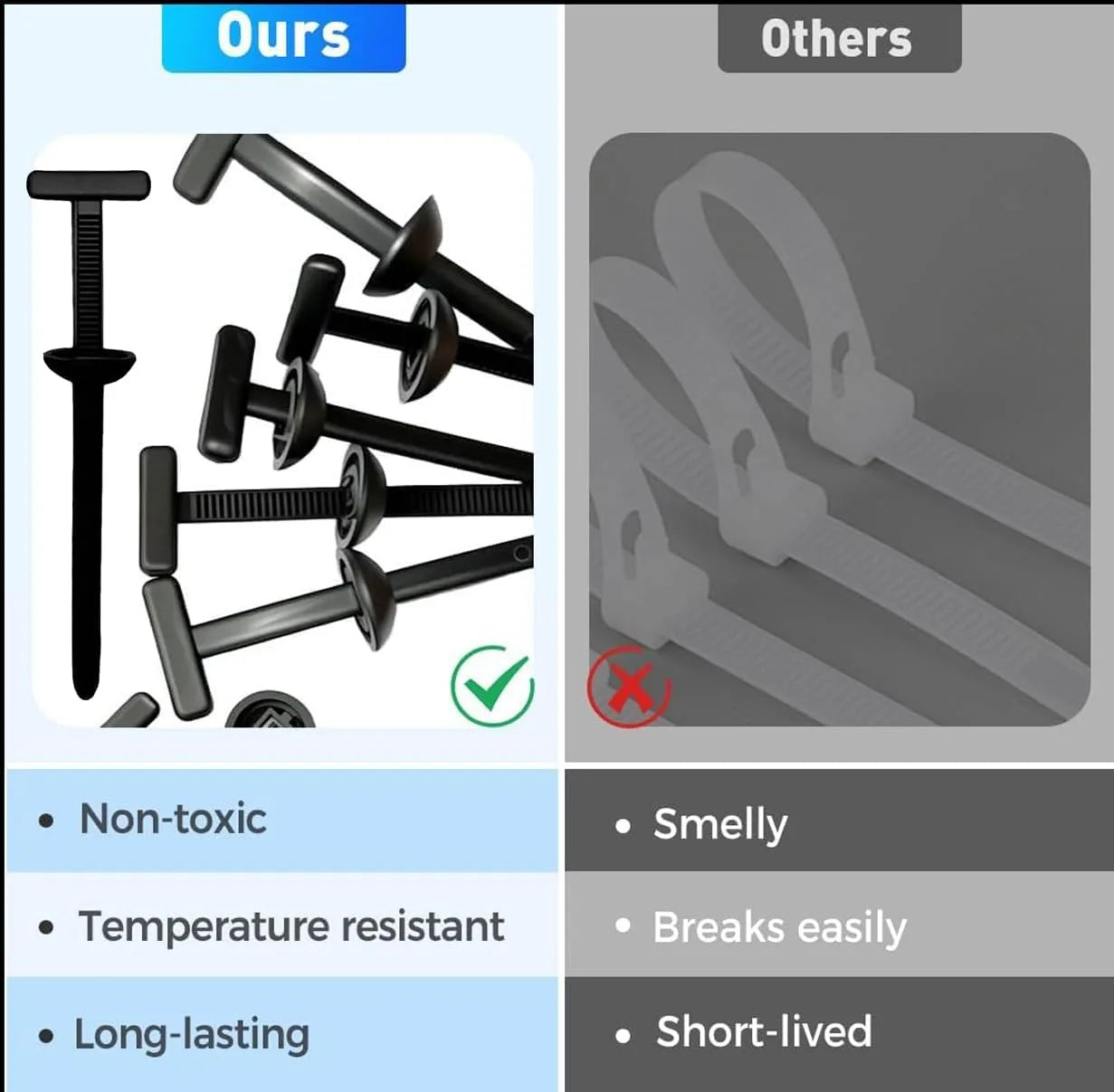 Heavy Duty Self Locking Nylon Zip Ties: Fast and Tool-Free Installation: Each tie features a heavy duty self locking nylon zip tie design that makes installation simple and tool-free. Just insert and pull to lock. Whether you’re in a rush or handling a DIY auto project, these nylon cable tie buckles get the job done quickly and securely